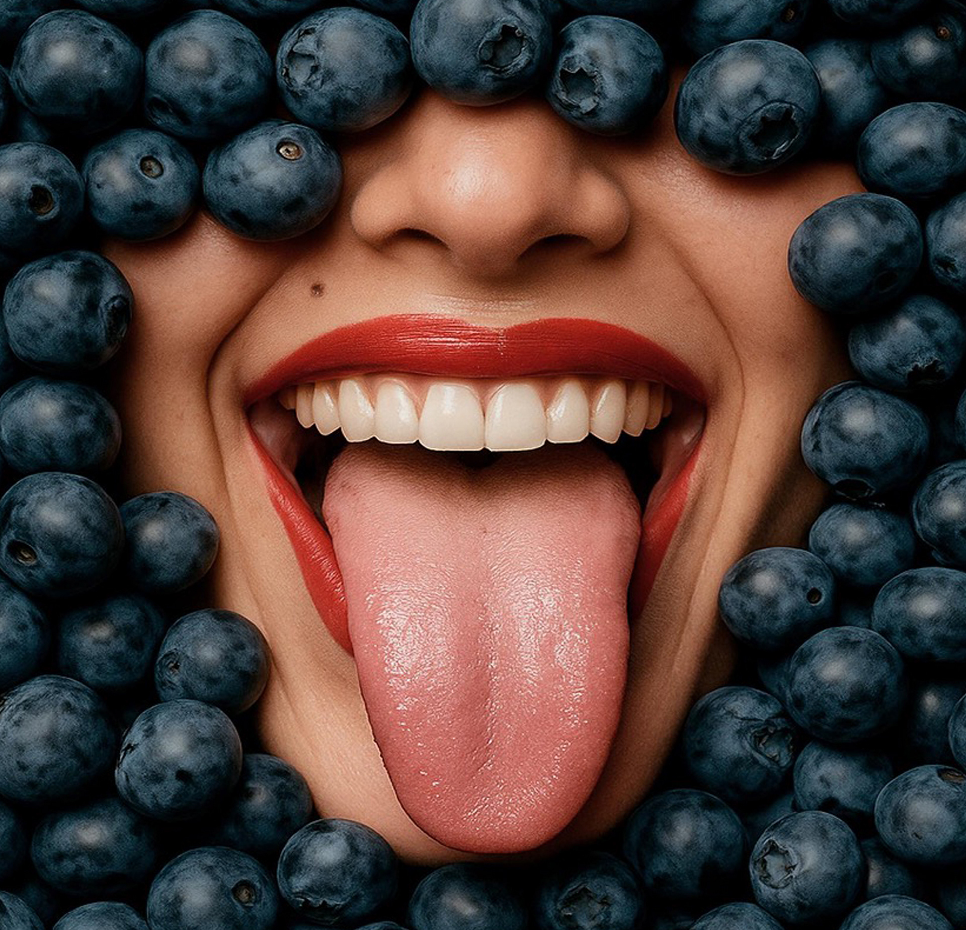 The language combines appetizing textures with sensual imagery, creating a bold and contemporary visual territory that reinforces the idea of a kissable product.